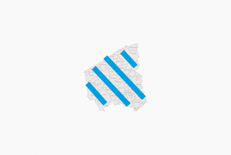 De lijnen zijn zo opgebouwd dat deze de contour van West-Vlaanderen aannemen. De strakke letters naast het logo zorgen voor een mooie samenhang.